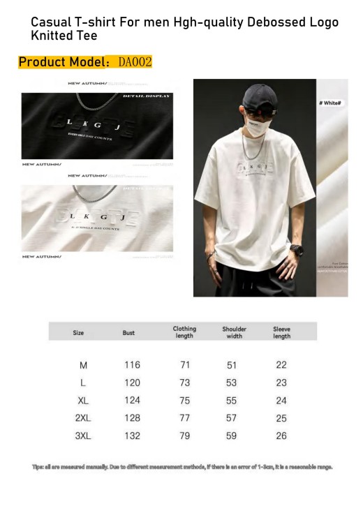 Casual Knitted Tee (DA002): High-quality fabric with a refined debossed finish.