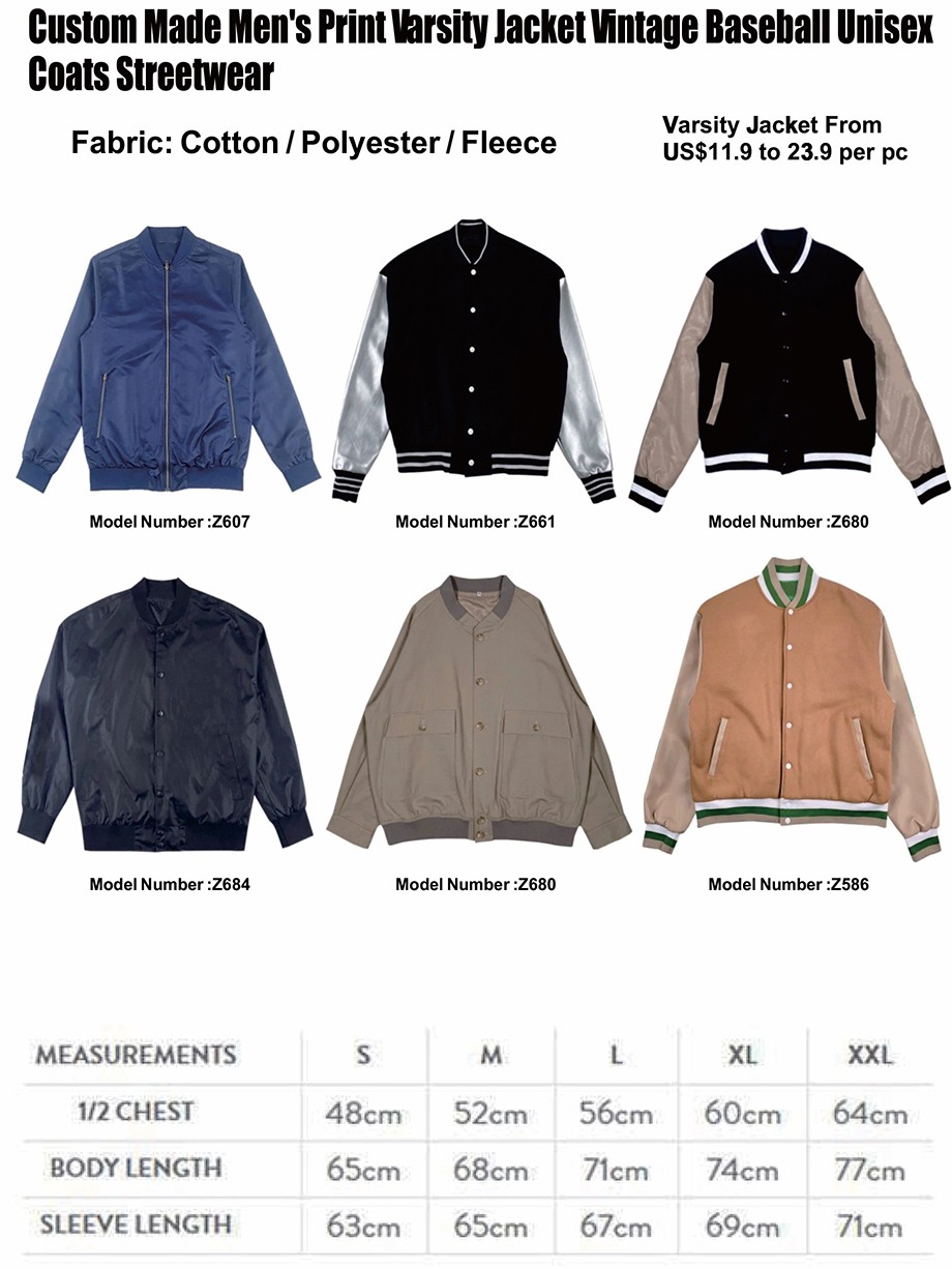TTgarment Custom Made Varsity Jacket Baseball Bomber Jacket Z661